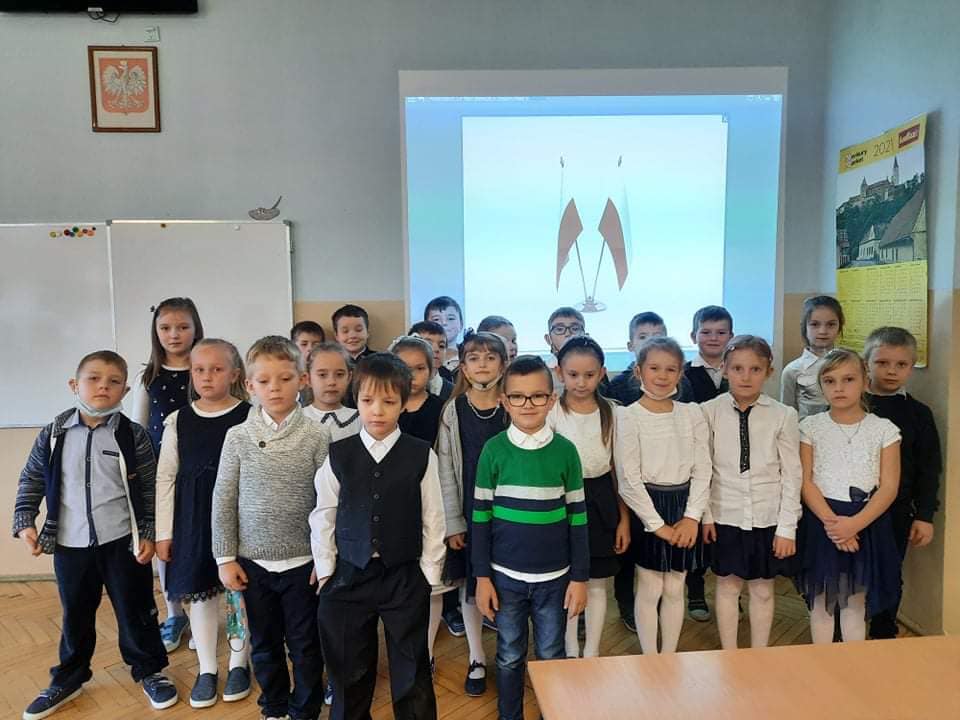 Udział w akcji #SzkołaDoHymnu Published 10 listopada 2021 | By Elżbieta Biedrońska #SzkołaDoHymnu W bieżącym roku szkolnym po raz kolejny nasza szkoła wzięła udział w akcji Szkoła do Hymnu. W okrojonym wprawdzie składzie, ale jednak punktualnie o 11.11 każda klasa odśpiewała „Mazurek Dąbrowskiego”
