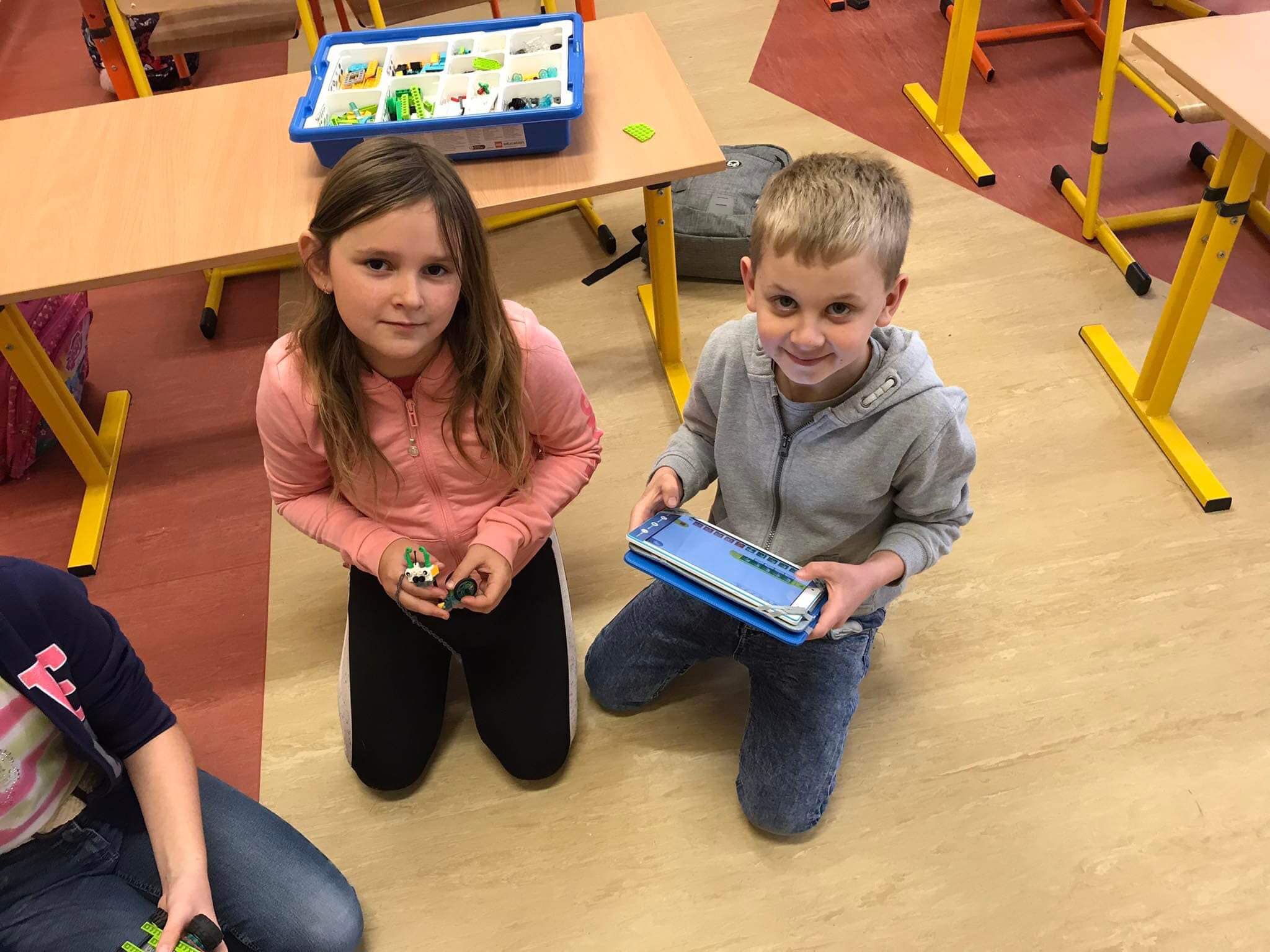 W świat robotyki i programowania wprowadzają uczniów klasy 3 kolorowe klocki Lego WeDo. Mali konstruktorzy budują z nich roboty, a następnie ożywiają je przy pomocy oprogramowania. Lekcje z Lego WeDo to przede wszystkim zabawa, która uczy w przyjazny i ciekawy sposób 🙂