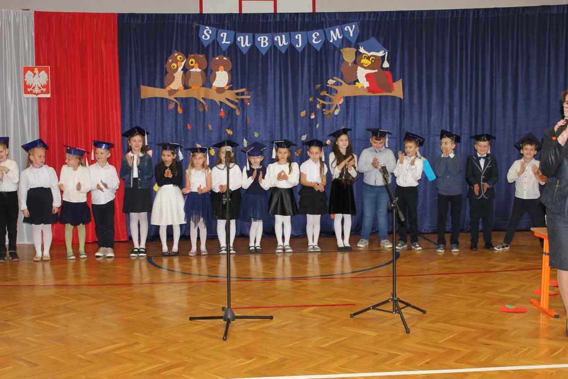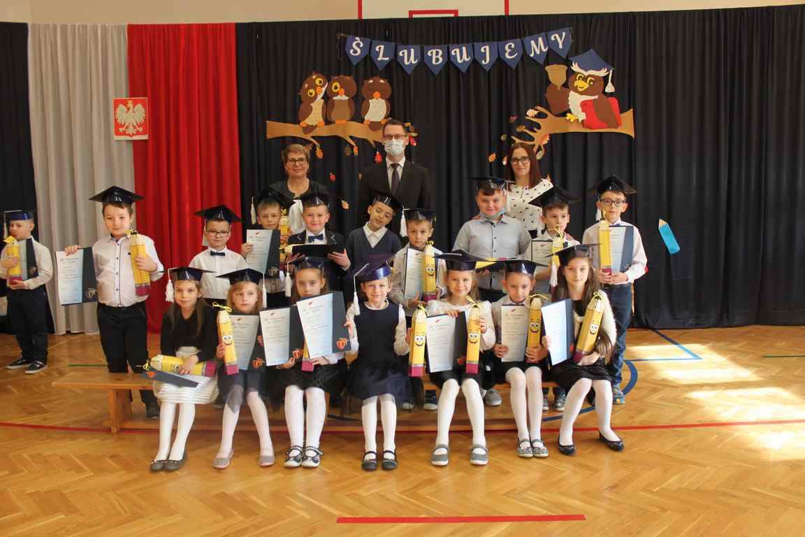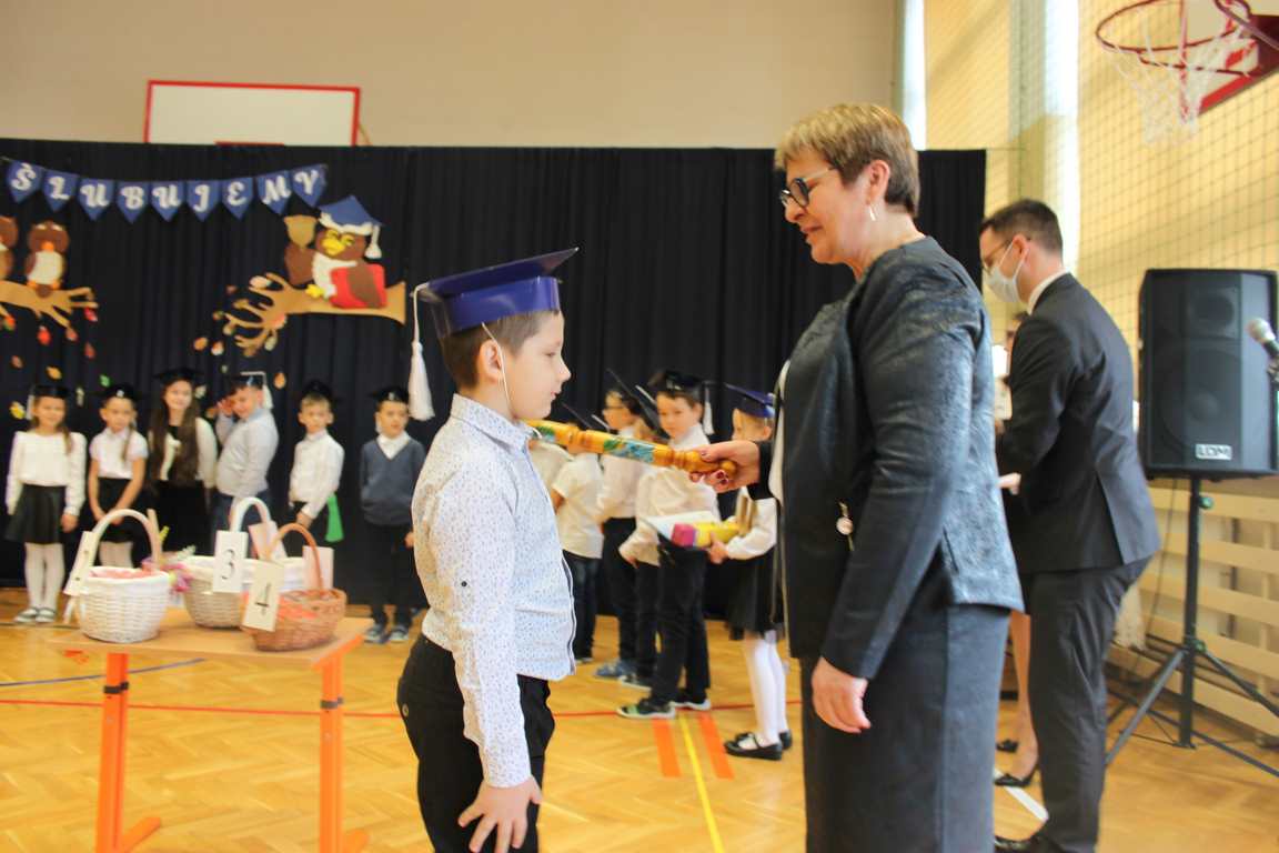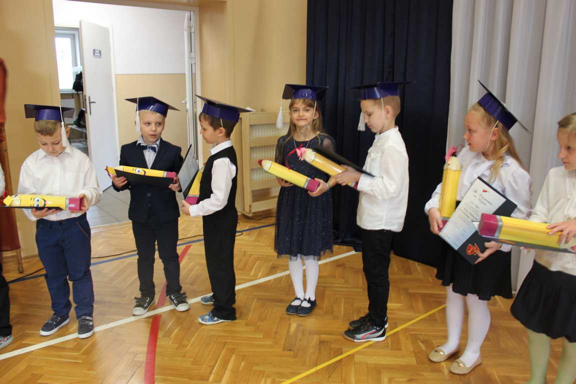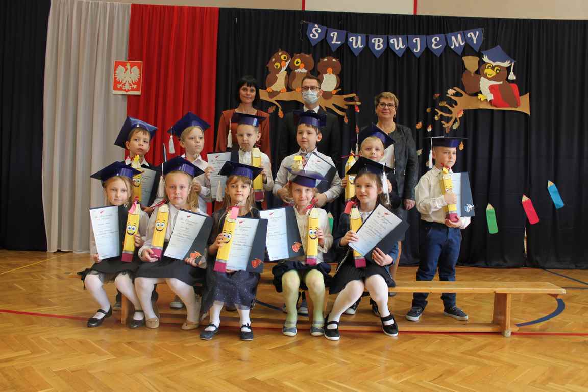 W czwartek, 2 grudnia 2021 r. odbyła się w naszej szkole uroczystość pasowania na ucznia. Na ten szczególny dzień z niecierpliwością oczekiwali uczniowie dwóch klas pierwszych, przede wszystkim dlatego, że pasowanie na ucznia było przekładane aż trzy razy. W końcu jednak udało się zebrać wszystkich w sali gimnastycznej, by oficjalnie przyjąć dzieci do grona uczniów szkoły. Podczas uroczystości pierwszoklasiści pokazali, że potrafią pięknie śpiewać i recytować wiersze, jednak najważniejszą jej częścią było ślubowanie oraz pasowanie wielkim ołówkiem przez panią dyrektor Jadwigę Łucarz. Pierwszaki głośno i z przekonaniem przyrzekały być pilnymi uczniami oraz rzetelnie wypełniać swoje obowiązki, o czym przypominać im będą otrzymane dyplomy. Wszystkim pierwszoklasistom  życzymy wielu sukcesów na drodze obowiązków szkolnych.