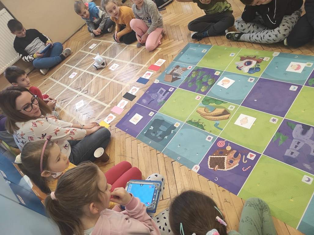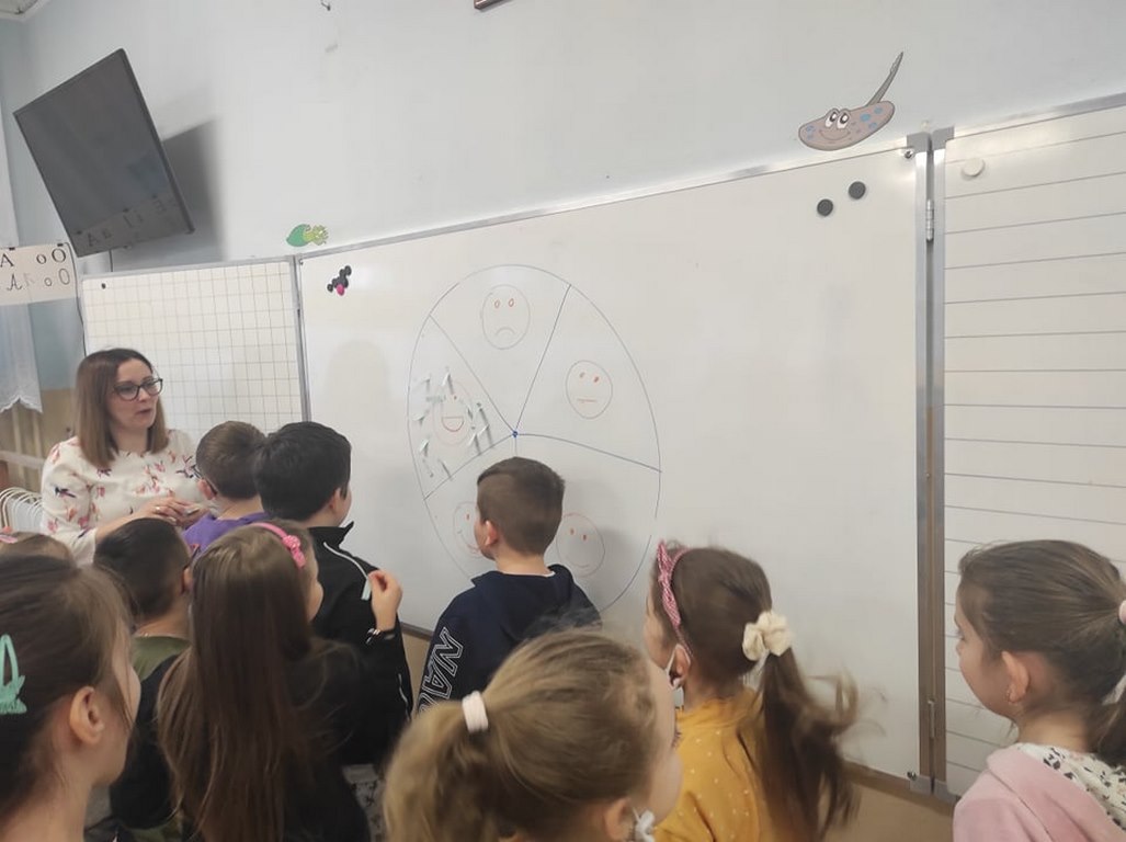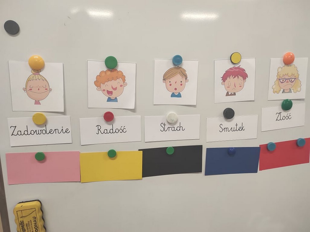 Kolejne spotkanie klasy I a z robotem Photon dotyczyło emocji, jakie towarzyszą nam w życiu codziennym. Zadaniem uczniów było rozpoznanie oraz nazwanie przedstawionych na kartach emocji. W kolejnej części każdy z uczniów miał okazję zaprogramować robota tak, aby dojechał do wybranej karty oraz zmienił jego kolor. Jak się okazało lekcja z wykorzystaniem programowania przypadła uczniom do gustu.