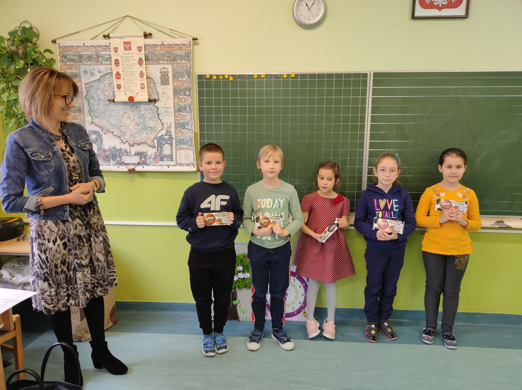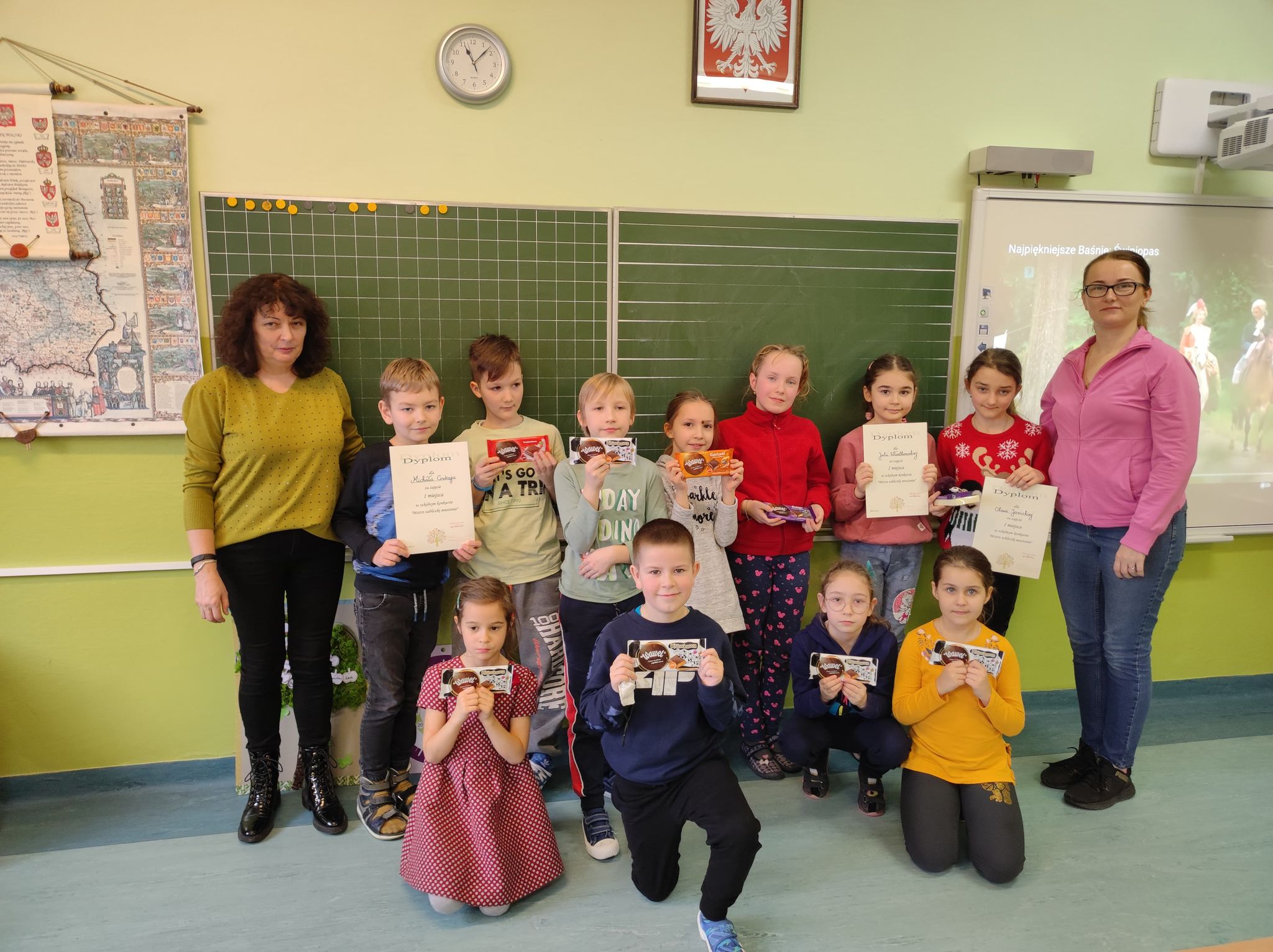 Dnia 9 marca w Naszej Szkole odbył się finał konkursu „Mistrz tabliczki mnożenia” klas drugich, zorganizowany przez wychowawczynie tych klas – Panią Alicję Kozioł i Panią Annę Socha. Z grupy wcześniej wybranych uczniów Jury w osobie Pani Wicedyrektor Moniki Bochenek – Król wyłoniło trójkę Mistrzów, którzy nie popełnili ani jednego błędu! Najlepsi okazali się: Oliwia Janicka, Julia Włodkowska i Michał Ciukaj, którzy otrzymali pamiątkowe dyplomy i nagrody. Miejsca II i III także nagrodzono słodkimi upominkami. Gratulujemy i życzymy dalszych sukcesów!