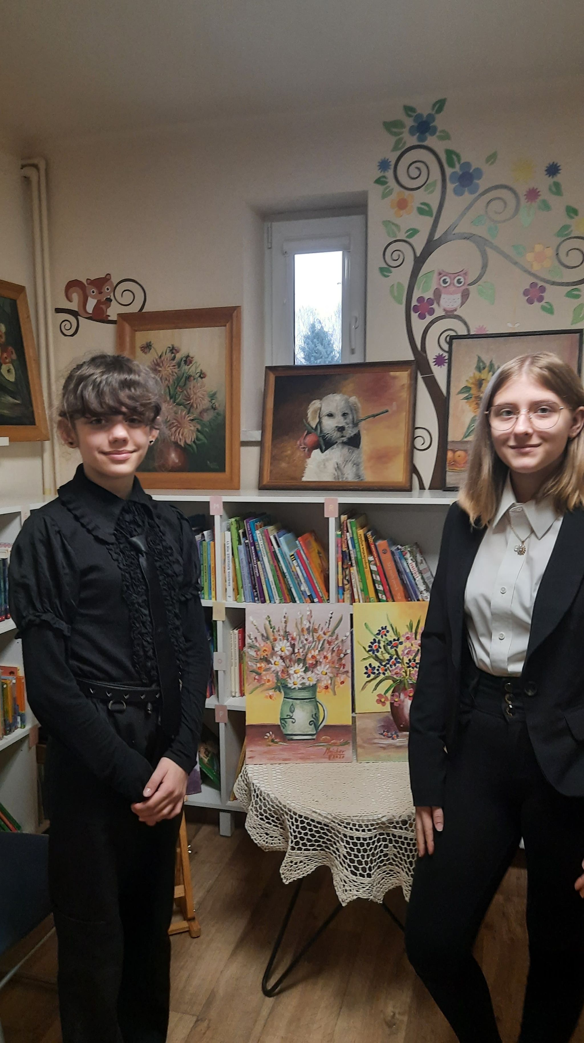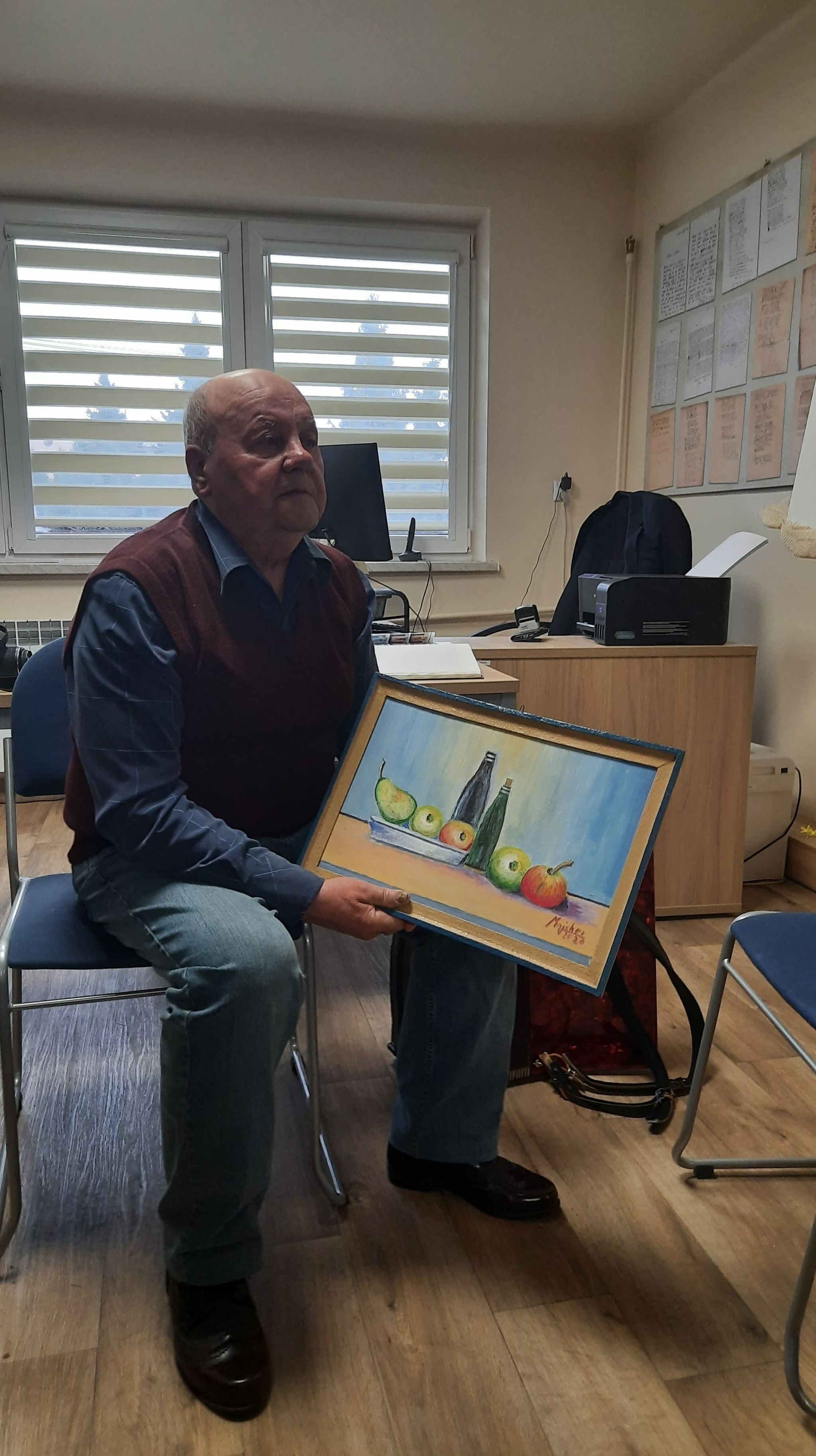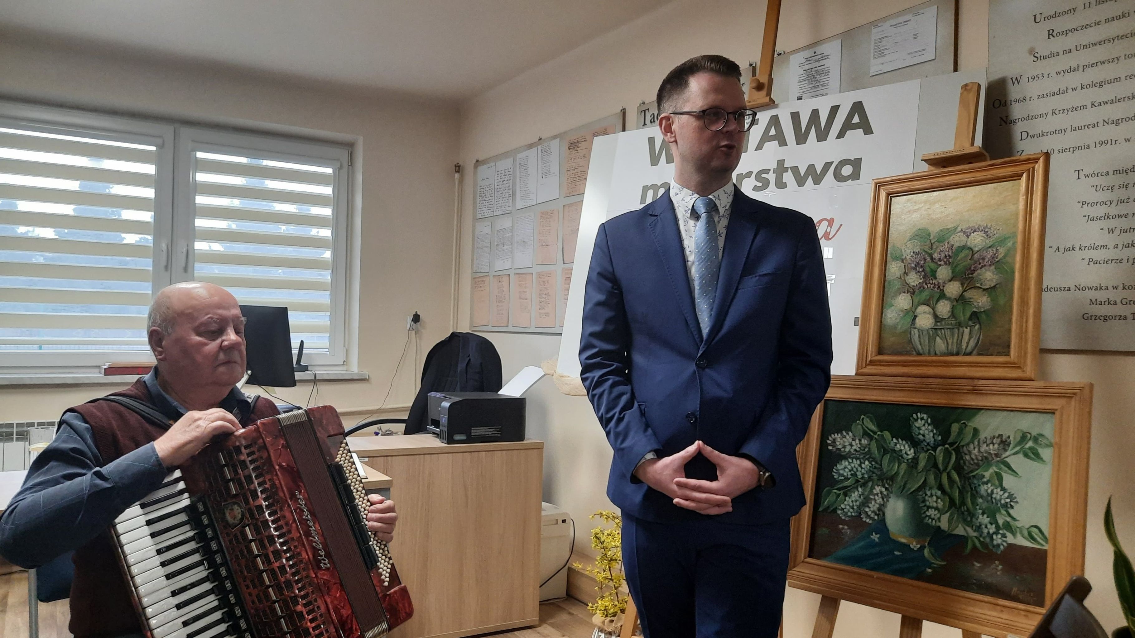 31 marca w Gminnej Bibliotece Publicznej odbył się wernisaż wystawy malarstwa Stanisława Majchra, w wydarzeniu mieli okazję wziąć udział uczniowie klasy 7a i 7b. Wystawa pod hasłem „Wiosna jest kwiatem” prezentuje bardzo wiele pięknych kompozycji kwiatowych wykonanych techniką olejną i akwarelową. W otwarciu wystawy uczestniczył twórca obrazów – Stanisław Majcher, który na powitanie zebranych zagrał kilka utworów na akordeonie, a następnie opowiadał o swojej pasji, jej początkach, inspiracjach, sposobie tworzenia. Uczniowie z podziwem przyglądali się prezentowanym pracom i zadawali pytania twórcy. Pan Stanisław swoją pasję zaczął rozwijać będąc już na emeryturze, w swoich zbiorach ma ponad tysiąc obrazów, niechętnie się z nimi rozstaje, bo każdy z nich stanowi dla niego wartość emocjonalną.
