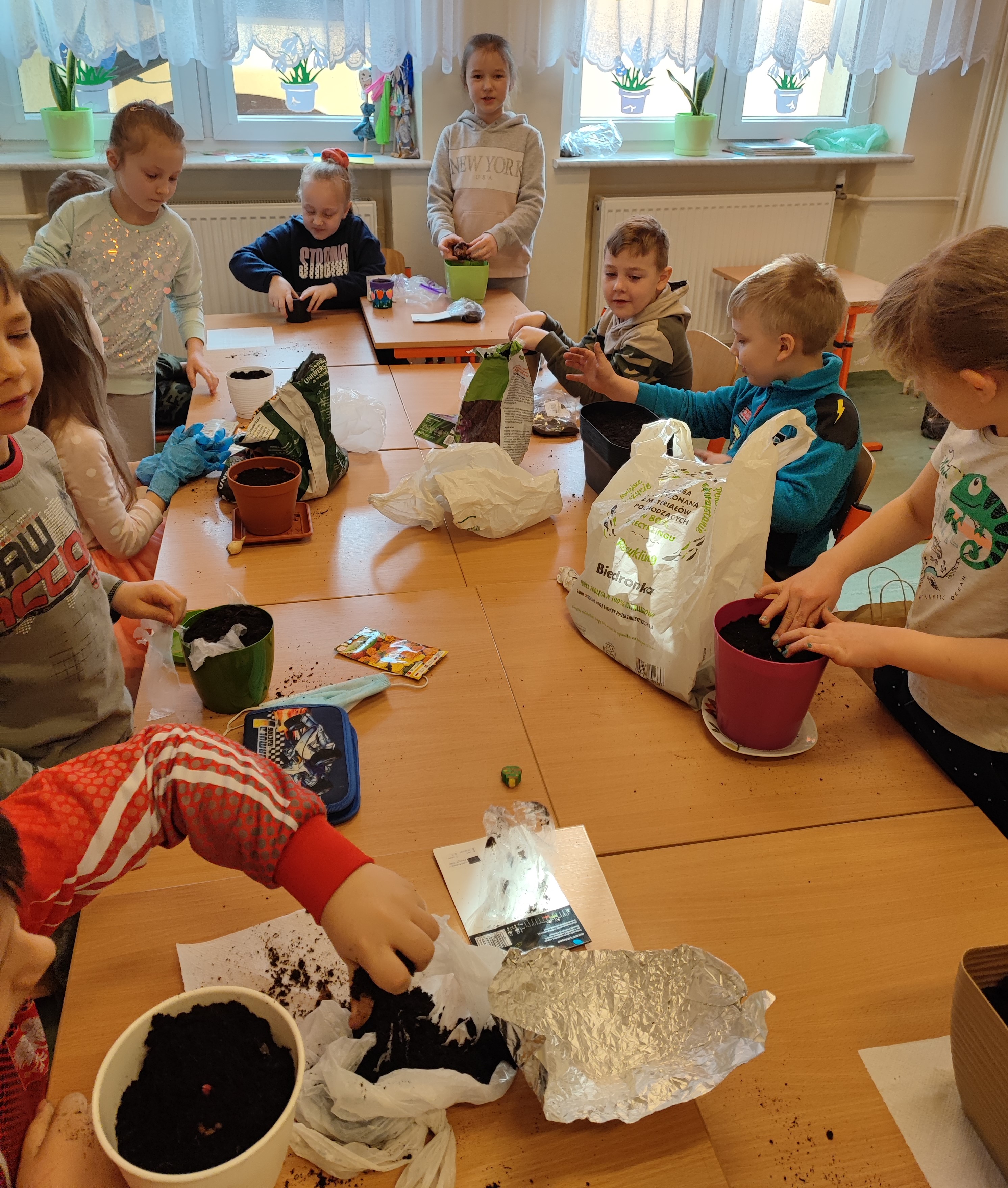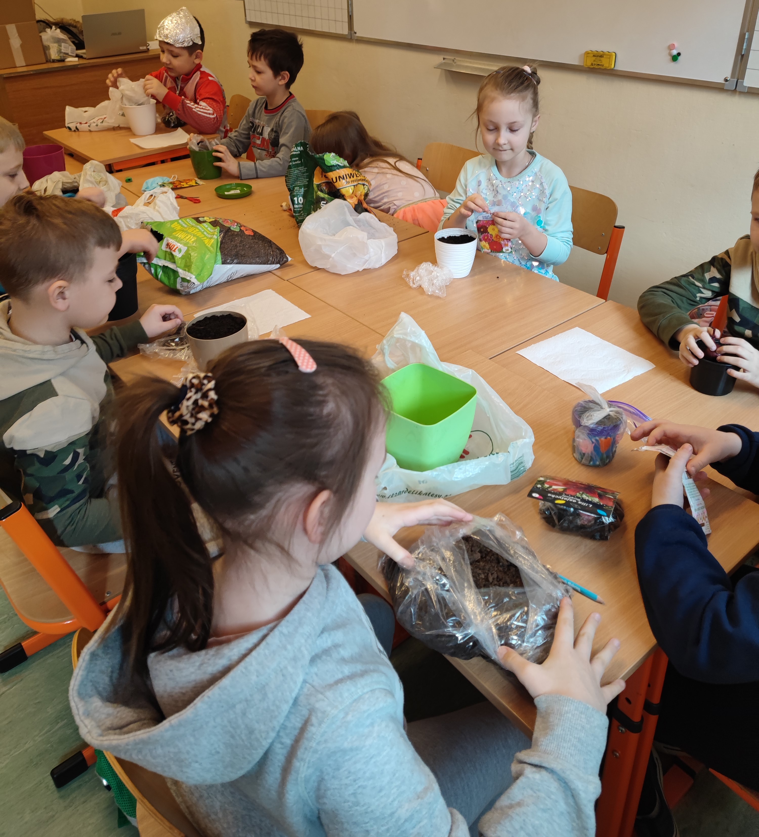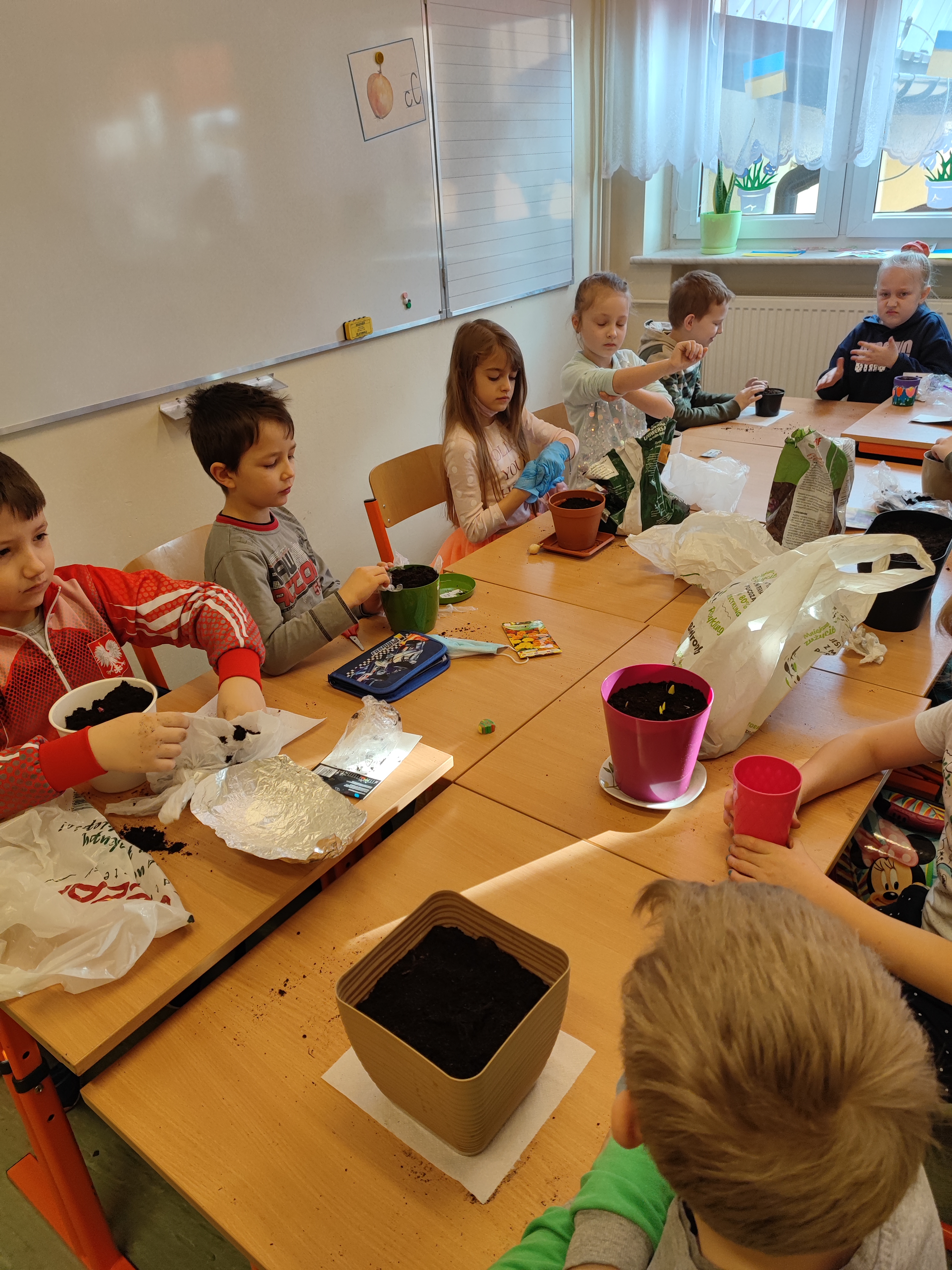 Uczniowie klasy I b początkiem marca założyli hodowlę roślin. Znalazły się tam fasola, cebula, oraz różne odmiany kwiatów. Celem tych działań było poznanie etapów i warunków rozwoju rośliny oraz jej budowy. Każdy z uczniów codziennie dba o swą roślinkę, sprawdza czy ma odpowiednie warunki do rozwoju i podlewa ją. Piękne i zadbane rośliny zdobią klasowy parapet.