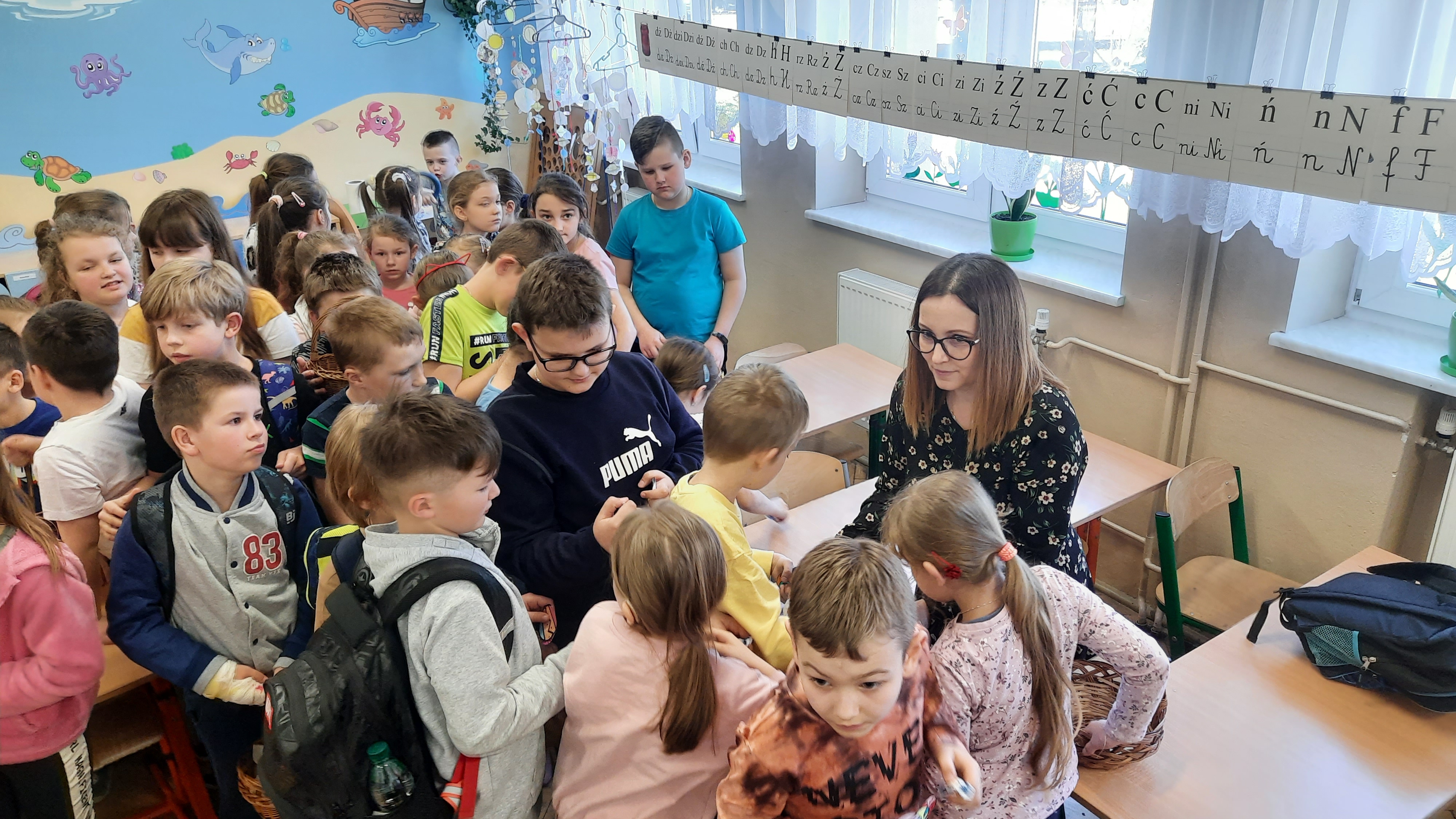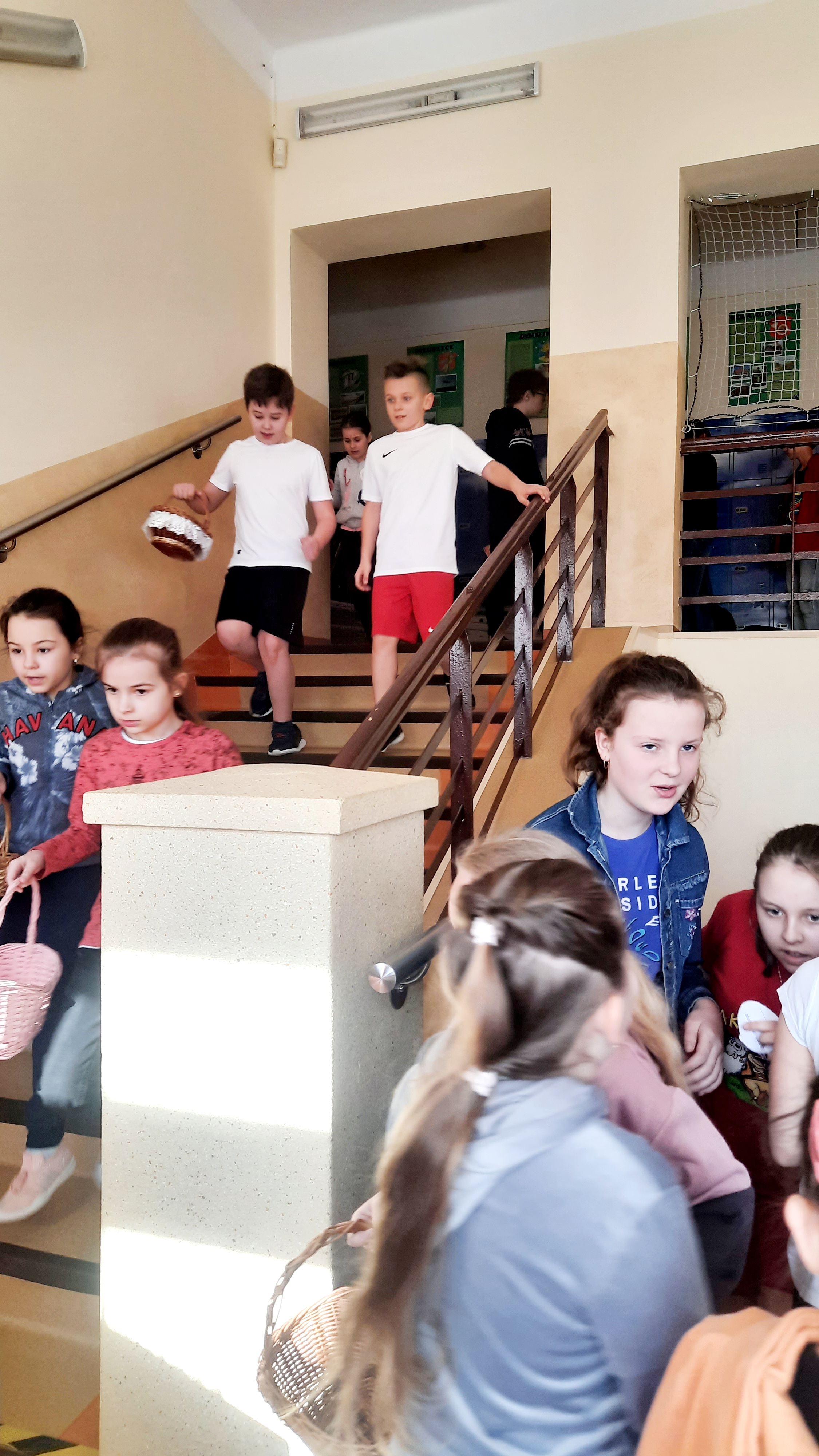 Przy okazji zbliżających się świat Wielkiej Nocy warto połączyć nauke z zabawą. Dlatego Easter Bunny odwiedził naszą szkołę i ukrył w niej kolorowe pisanki. Uczniowie klas 1-4 mieli za zadanie odszukać ukryte jajeczka, na których znajdowały się słówka związane ze Świętami Wielkanocnymi. Na prawdziwych tropicieli, którzy uzbierali najwięcej pisanek czekała słodka nagroda. Dla pozostałych uczestników Zajączek również miał małe co nieco na pocieszenie.