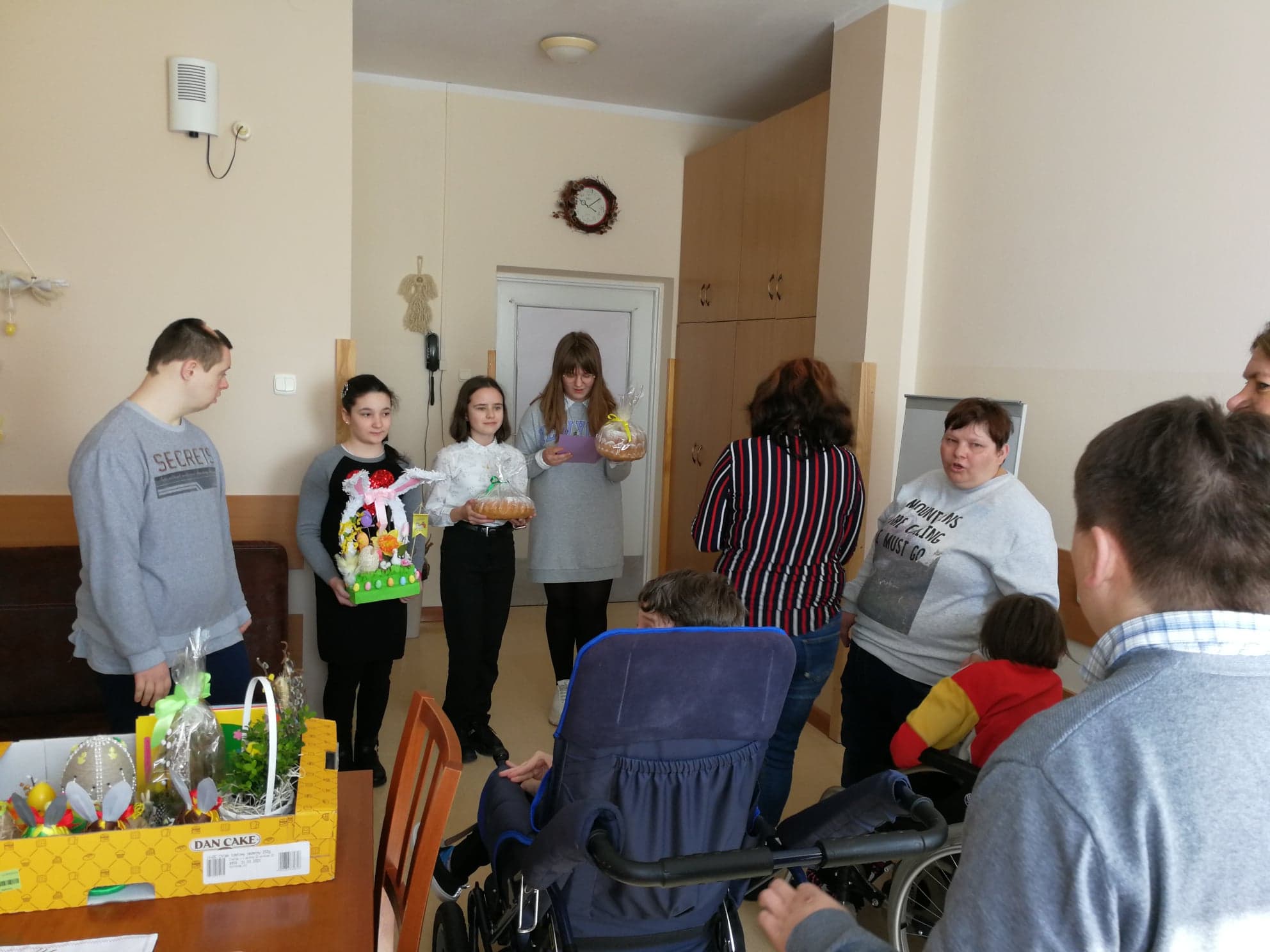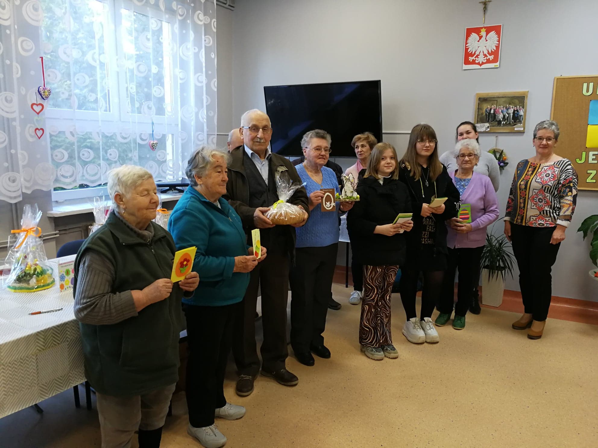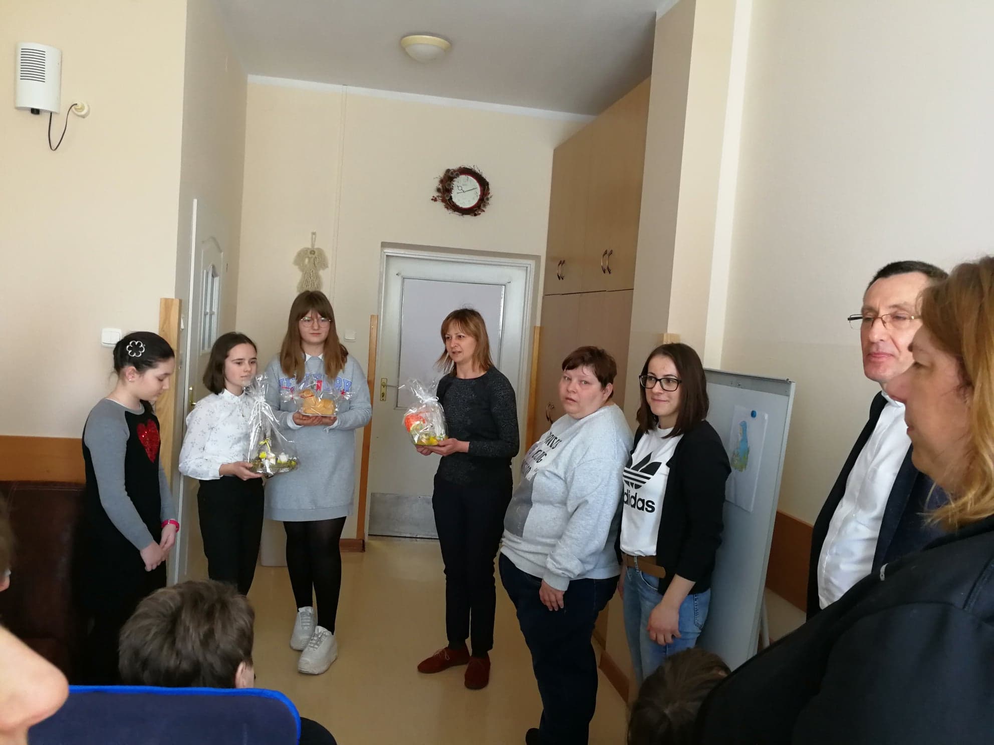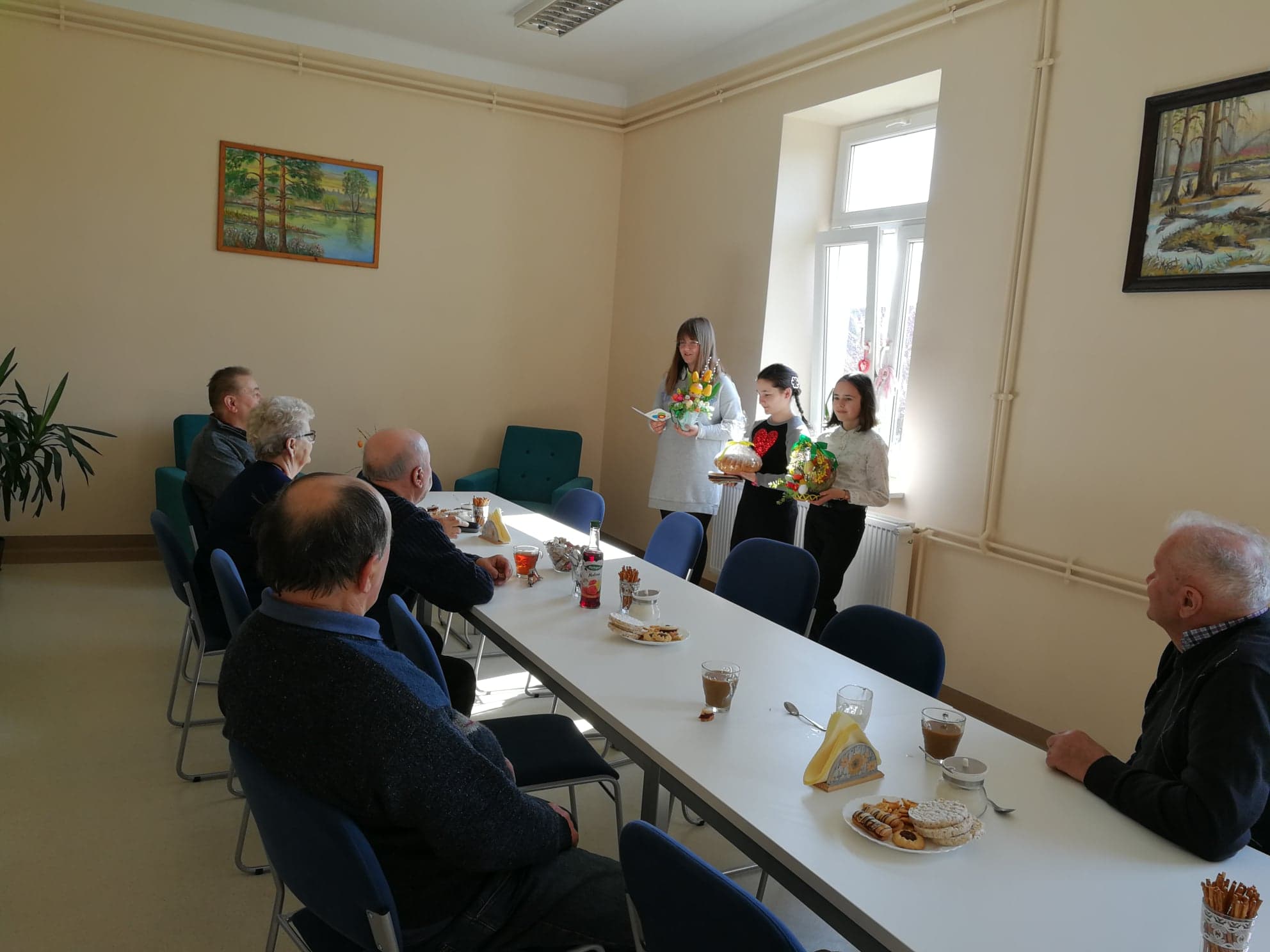 Przedstawiciele Wolontariuszy ze Szkoły Podstawowej w Wietrzychowicach wraz z opiekunką grupy, odwiedzili mieszkańców DPS w Jadownikach Mokrych oraz Seniorów z Klubów w Jadownikach Mokrych oraz Miechowicach Wielkich i złożyli wszystkim życzenia zdrowych i radosnych Świąt Wielkanocnych, a także wręczyli piękne stroiki i dekoracje wielkanocne, kartki z życzeniami oraz słodkie wielkanocne baby. Spotkania przebiegły w bardo miłej atmosferze.