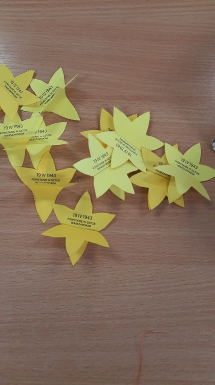 19 kwietnia przypada rocznica wybuchu powstania w getcie warszawskim – największego zbrojnego zrywu Żydów podczas II wojny światowej, a zarazem pierwszego powstania miejskiego w okupowanej Europie. Tego dnia Muzeum Historii Żydów Polskich POLIN organizuje corocznie akcję społeczno-edukacyjną Żonkile, w którą w tym roku włączyła się również nasza szkoła.