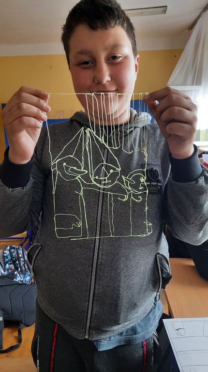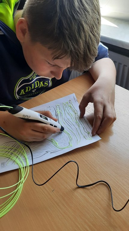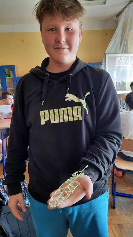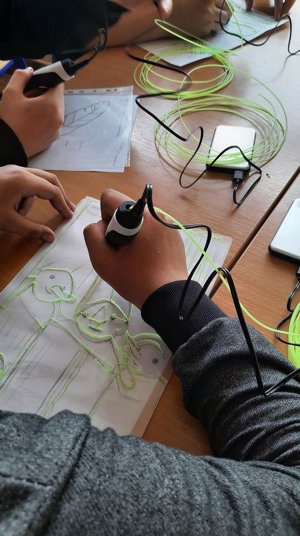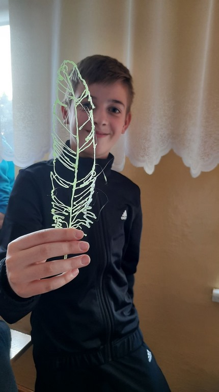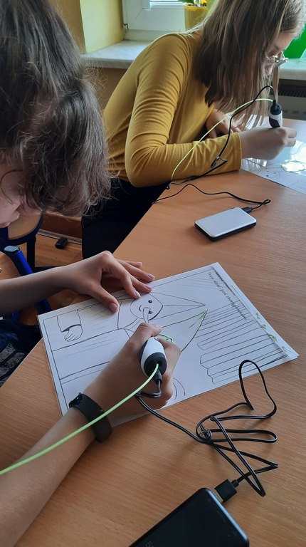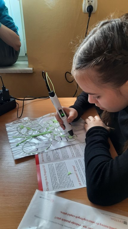 logo, napis laboratoria przyszłościNa lekcji plastyki uczniowie klasy 7a i 7b wykonywali prace plastyczne wykorzystując do tego technologię długopisów 3d, które zostały zakupione dzięki udziałowi naszej szkoły w programie #LaboratoriaPrzyszlosci. Na razie powstały bardzo proste formy, ponieważ obsługa tych urządzeń, jakimi są długopisy 3d, wcale nie należy do najłatwiejszych.