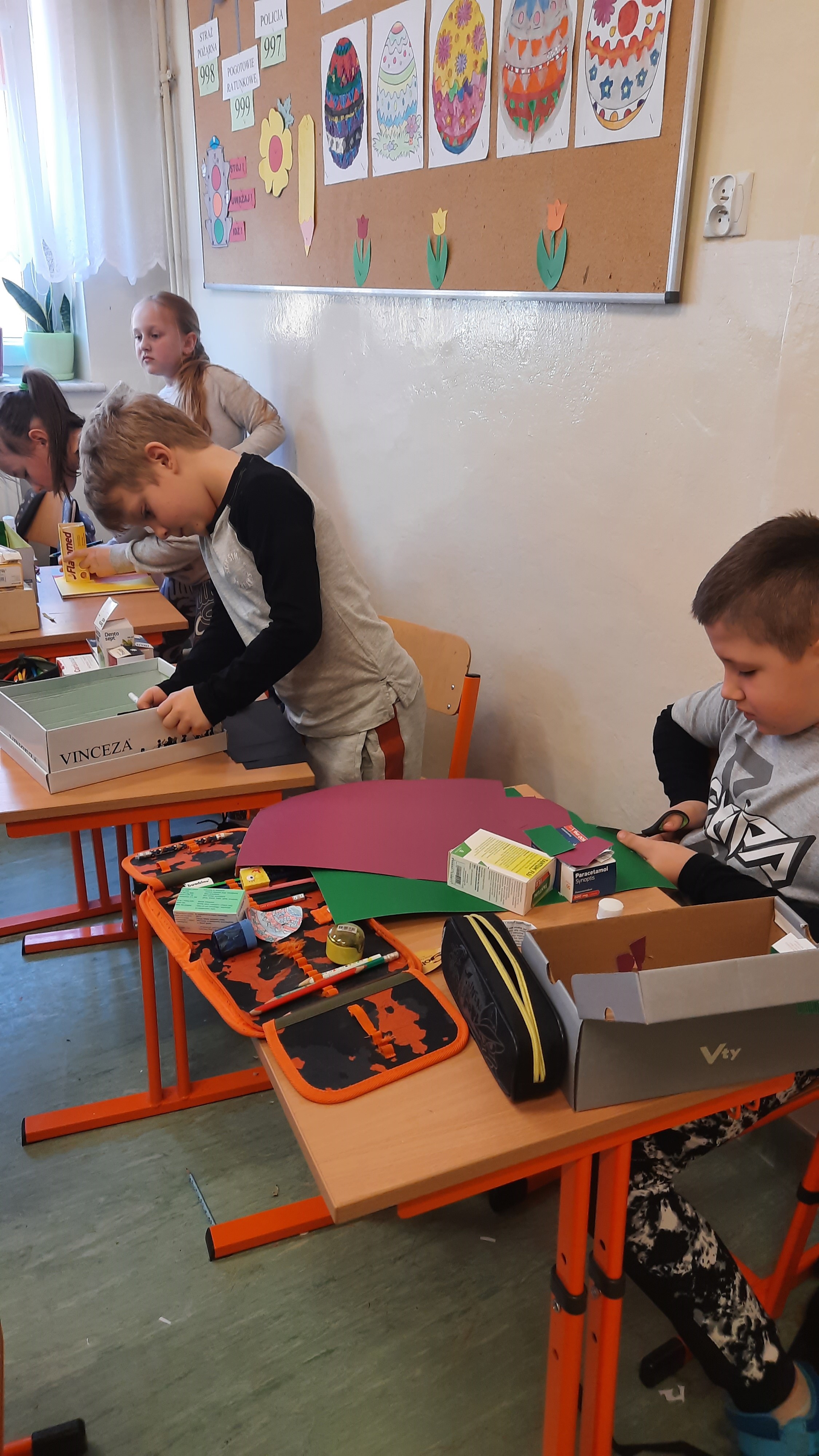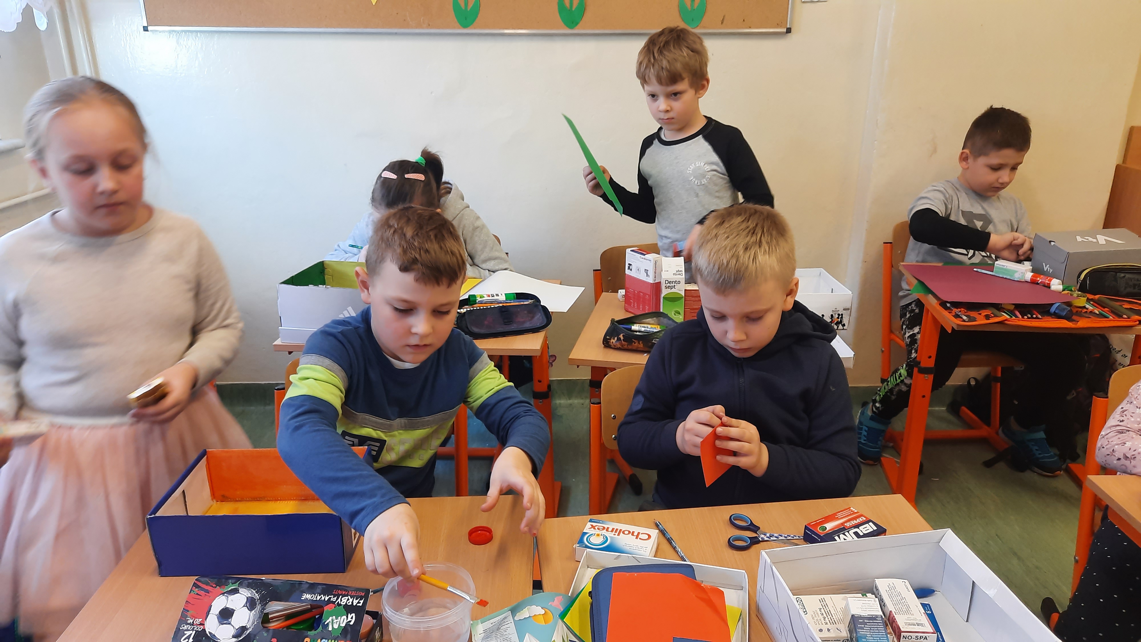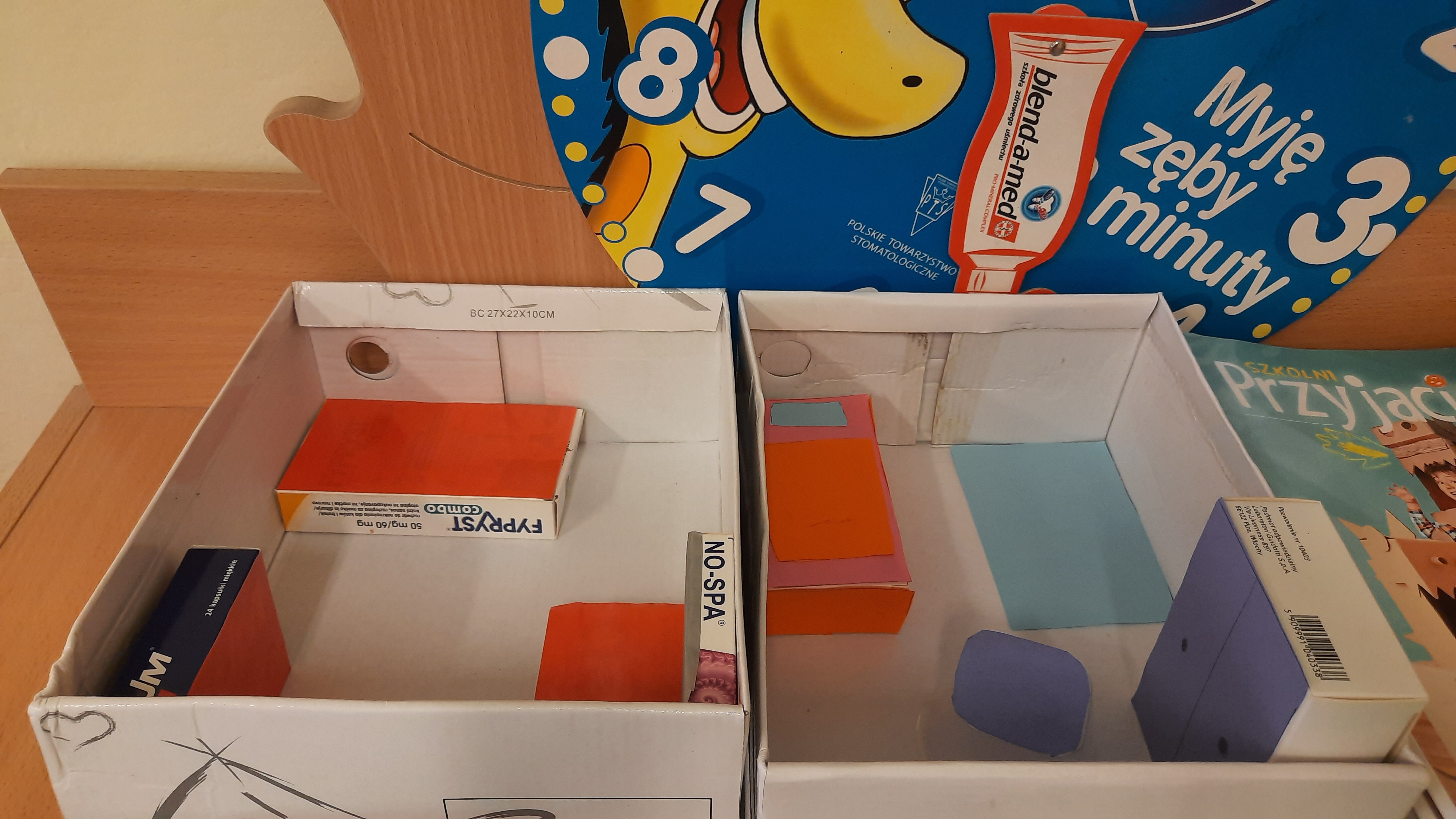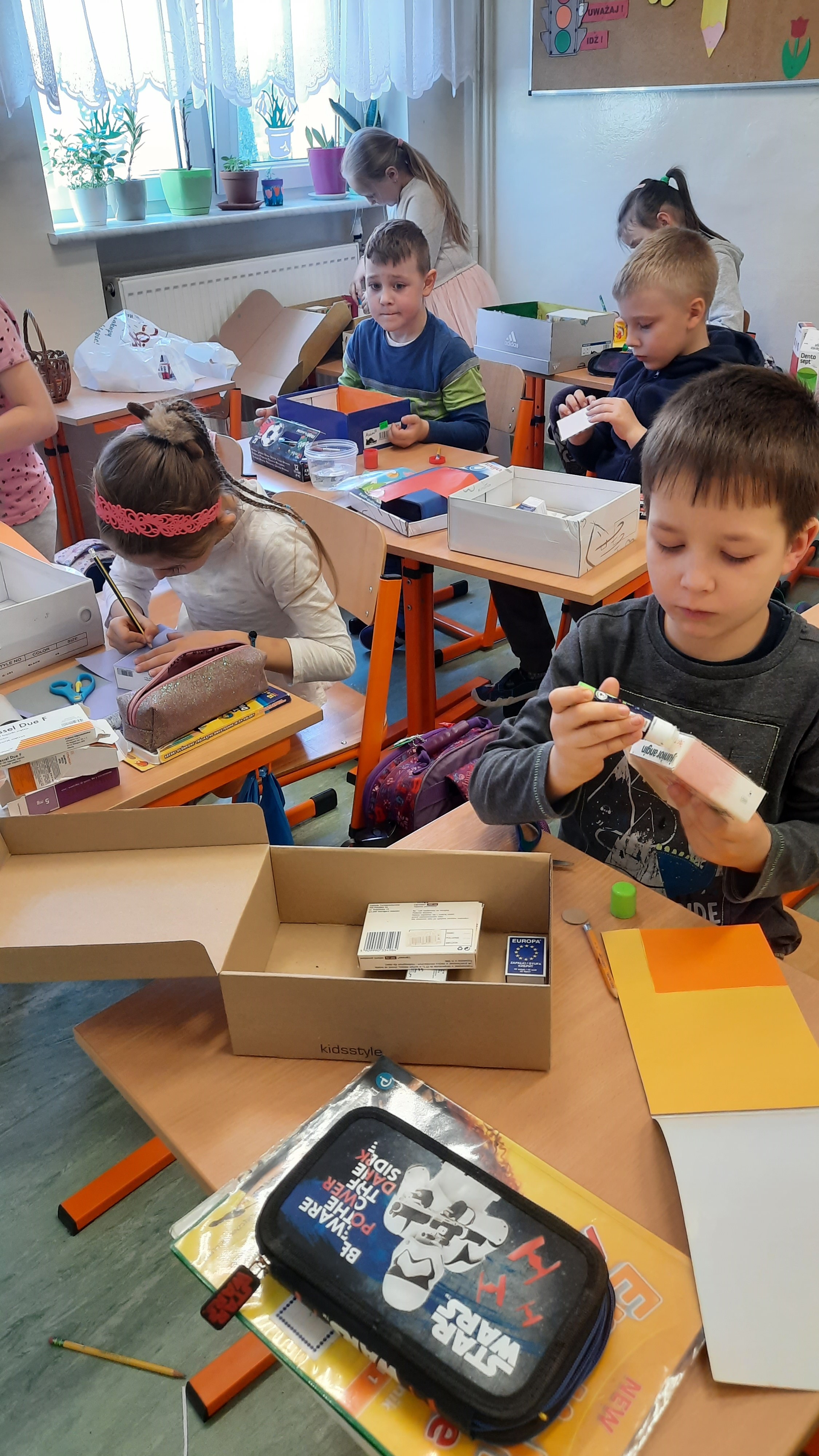 Zajęcia z języka angielskiego to nie tylko praca z książką czy zeszytem ćwiczeń. Uczniowie klasy 1b utrwalali poznane wiadomości pracując metodą projektu. Ich zadaniem był stworzenie jednego z poznanych wcześniej pomieszczeń znajdujących się w domu.