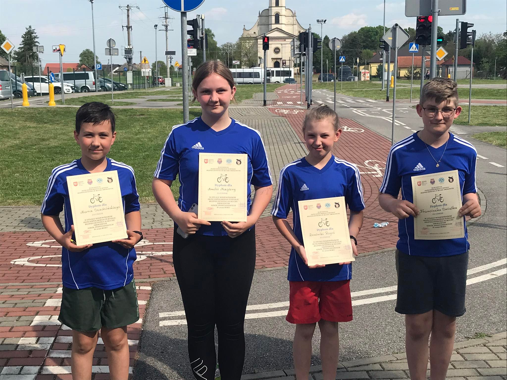 11 maja 2022r. uczniowie z naszej szkoły wzięli udział w Finale Wojewódzkim Turnieju Bezpieczeństwa w Ruchu Drogowym. Podczas turnieju rozwiązywali testy wiedzy, pokonywali sprawnościowy tor przeszkód, udzielali pierwszej pomocy przedmedycznej oraz pokonywali miasteczko rowerowe. Uczniowie w składzie: Amelia Magiera, Dominika Rogóż, Alan Szadziński, Franciszek Świątek zajęli 7 miejsce.