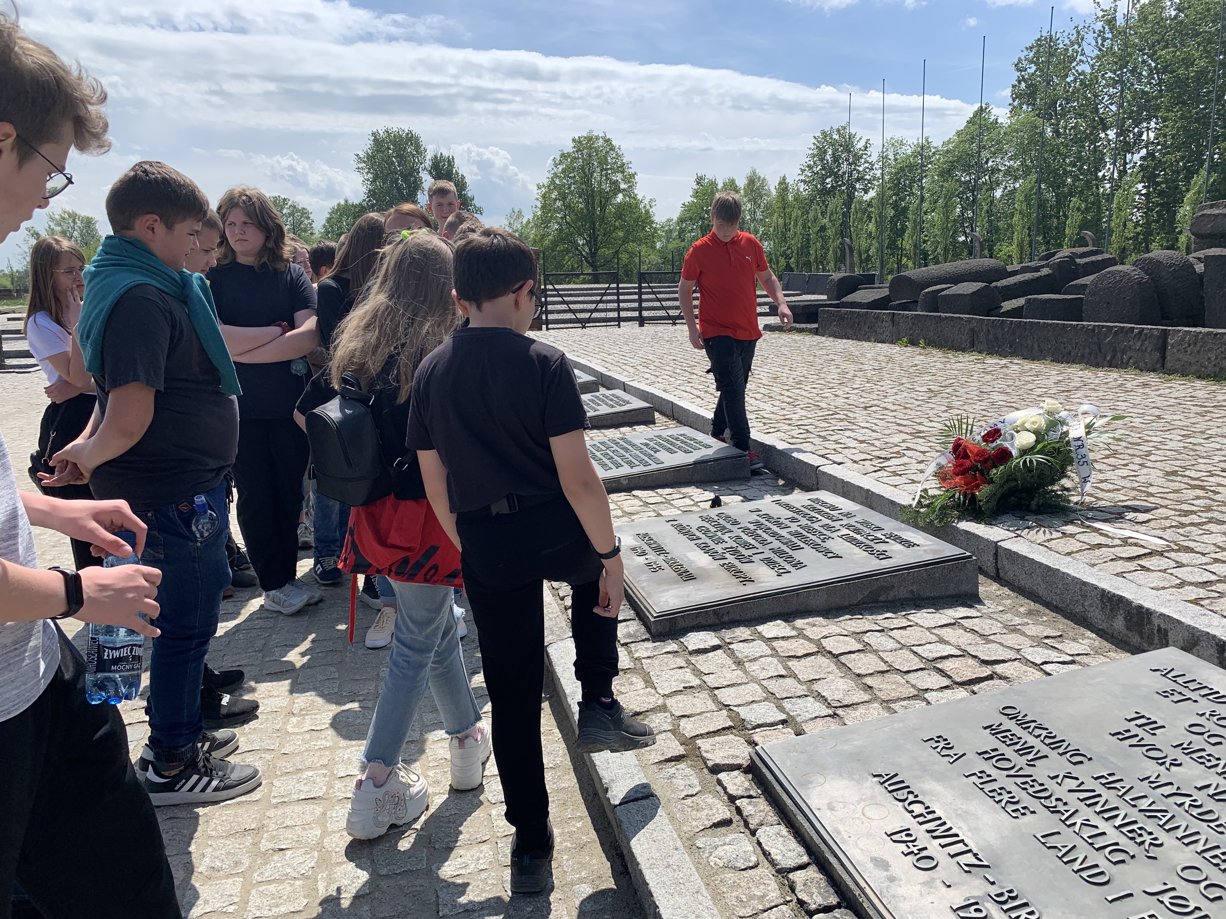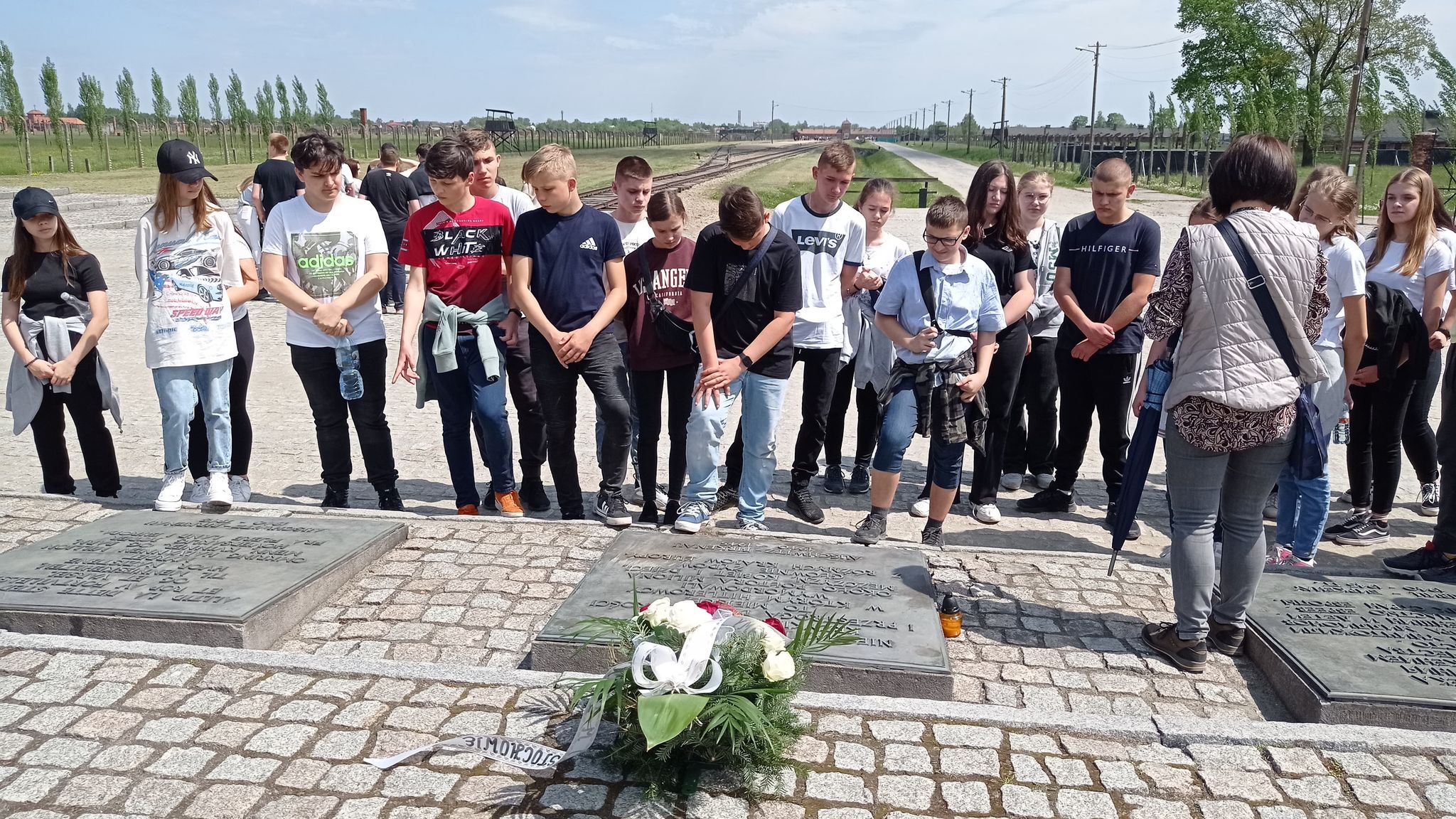 Na terenie obozu każde miejsce przywołuje ducha przeszłości i przypomina o okrutnym i bezwzględnym ludobójstwie. Każde zdjęcie, ekspozycja, barak, bunkier, prycza, fragment szyn, słupy i druty kolczaste przypominają wymowne motto „Ludzie ludziom zgotowali ten los”. Dla naszej młodzieży wycieczka ta była ważną lekcją historii, podczas której z powagą i dużym zainteresowaniem uczniowie wsłuchiwali się w historię byłego nazistowskiego obozu koncentracyjnego i natychmiastowej zagłady.