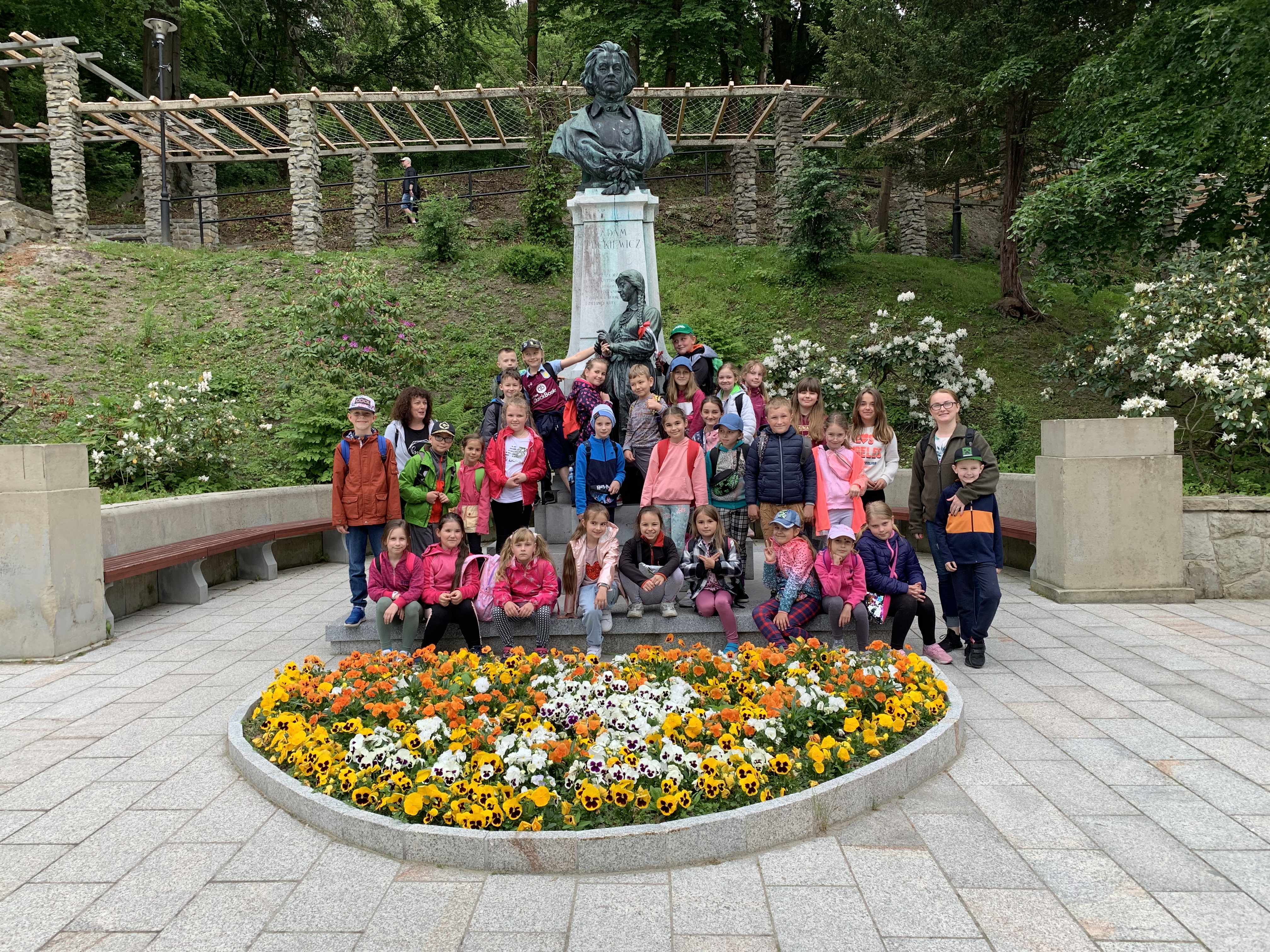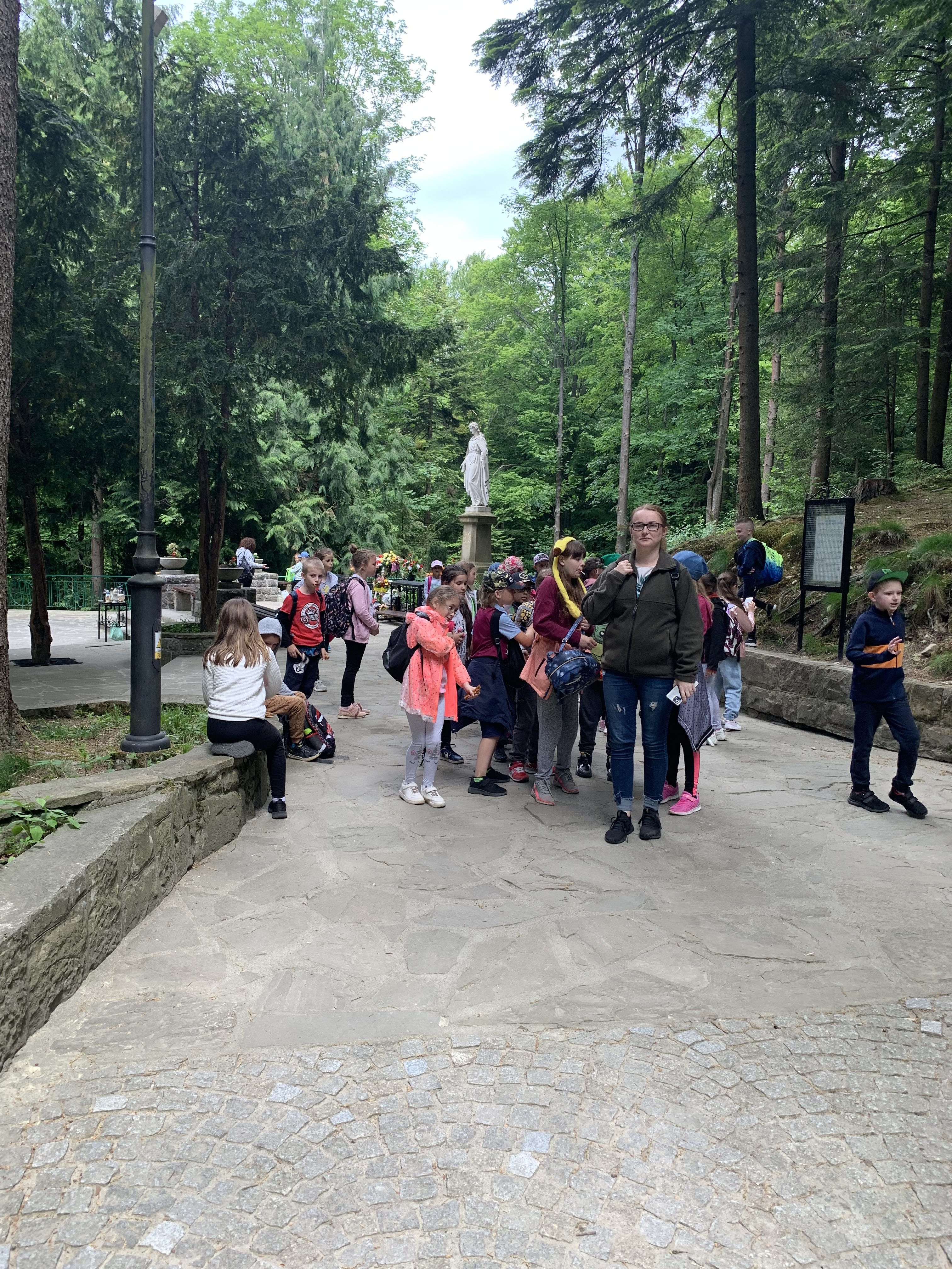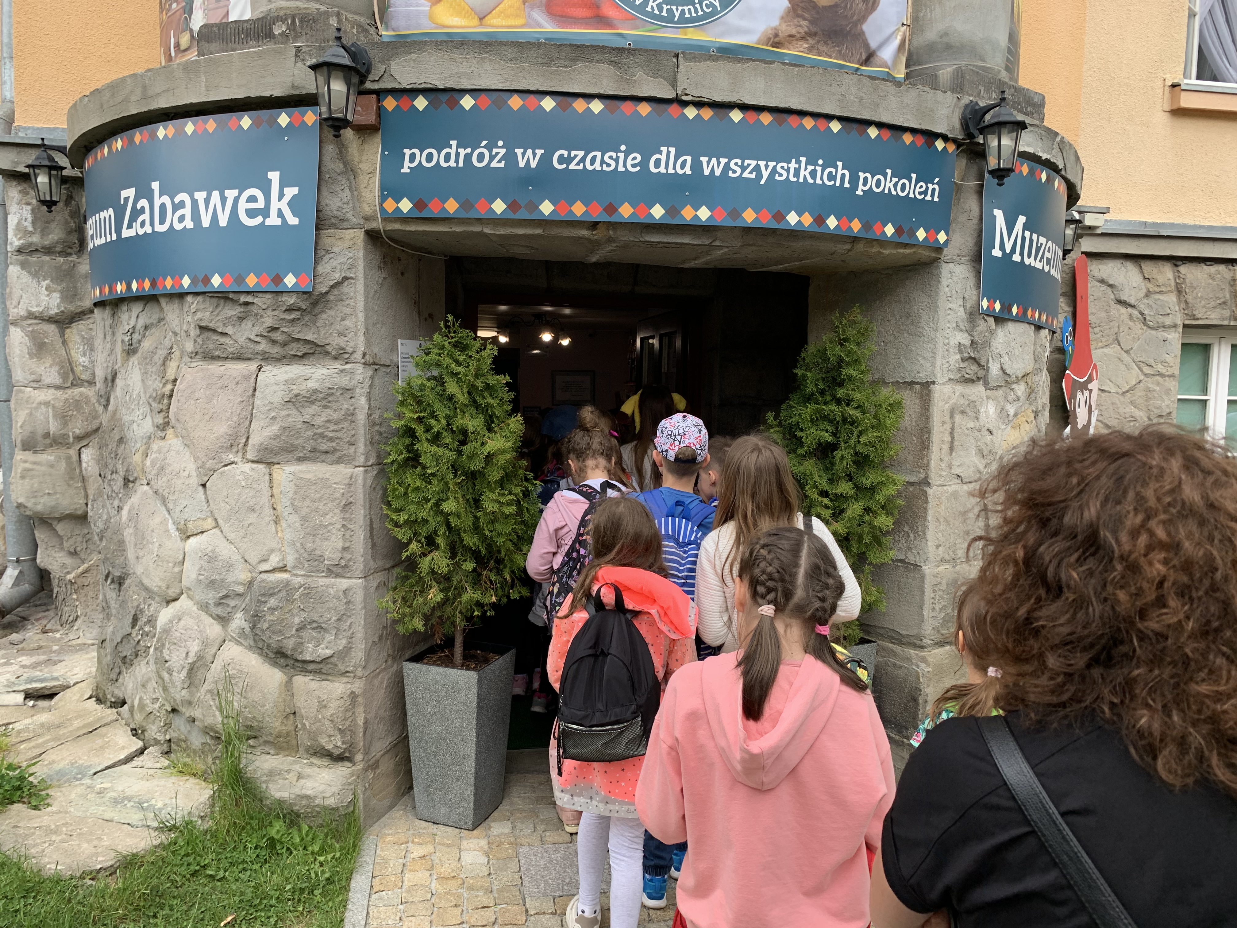 2 czerwca uczniowie klas 2 a i b wyjechali na wycieczkę do Krynicy. Wycieczkowicze pobyt w Krynicy rozpoczęli w Pijalni Głównej, gdzie mogli skosztować naturalnych wód leczniczych oraz wody mineralnej Kryniczanka, następnie zaś kolejką kolejką linowo – terenową wjechali na Górę Parkową, by na szczycie poszaleć na jej głównej atrakcji – Rajskich ślizgawkach, czyli wysokiej wieży, z której z radością zjeżdżali „rynnami”. W drodze powrotnej ze szczytu, wśród leśnych gęstwin, uczniowie mieli okazję odnaleźć wiele ciekawych zabytków i atrakcji, m. in. Statuę Najświętszej Maryi Panny – Królowej Krynickich Zdrojów – słynącą łaskami figurę, przy której gromadzą się kuracjusze. Chwilę przerwy przed ostatnim punktem programu dzieciaki wykorzystały na harce i zabawy przy fontannie multimedialnej w centrum krynickiego Deptaku. Punktualnie o 15. 00 wszyscy stawili się przed Muzeum Zabawek, by na własne oczy zobaczyć, czym dawniej bawiły się dzieci, a nawet spróbować swoich sił w pierwszych grach komputerowych 🙂
