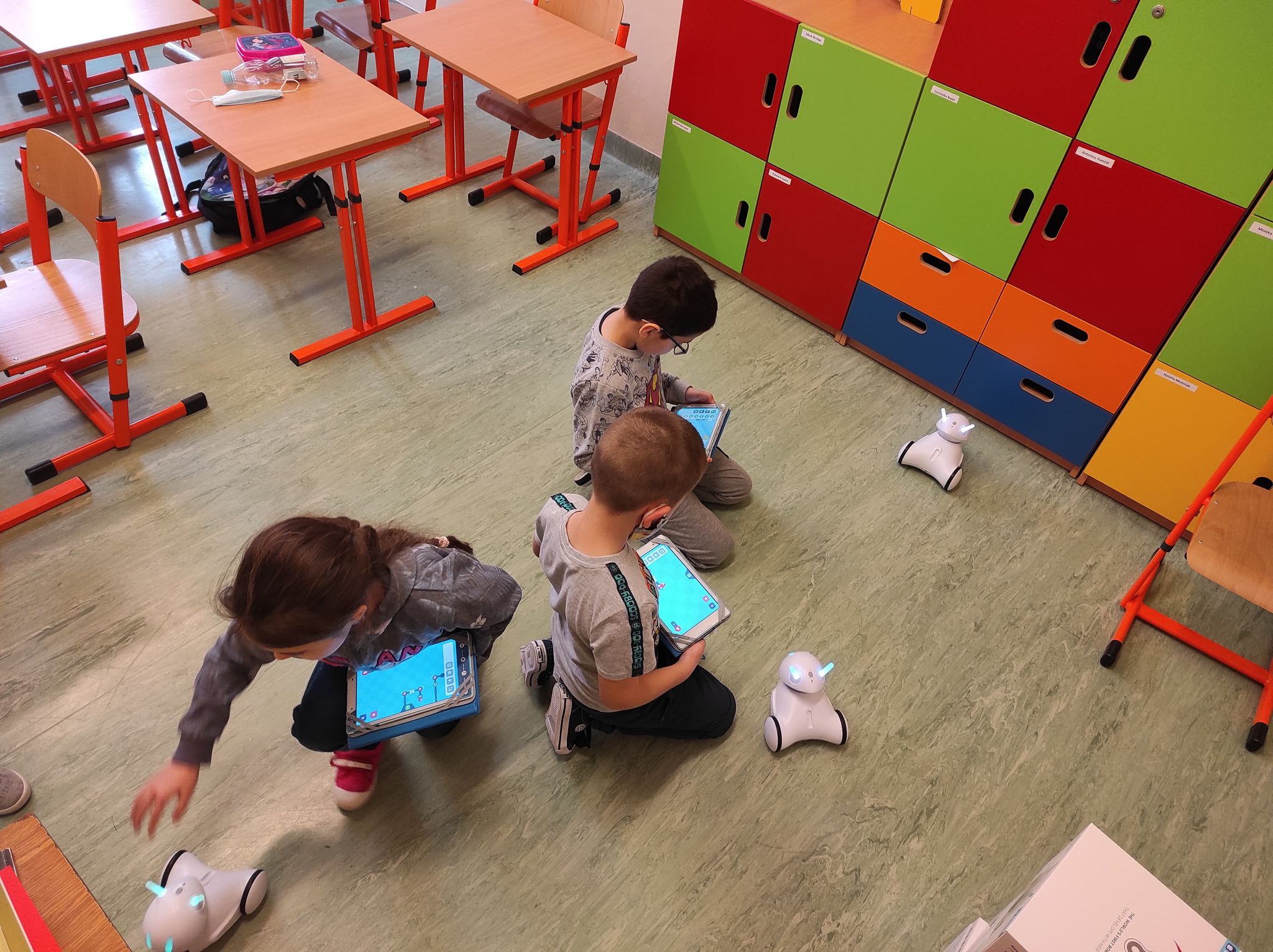 Uczniowie klasy pierwszej pracowali dziś z nowymi robotami.